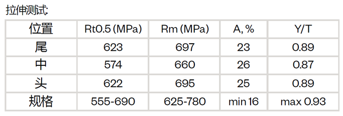 表3:中俄东部管道使用的API X80管材的化学成分和拉伸试验结果。